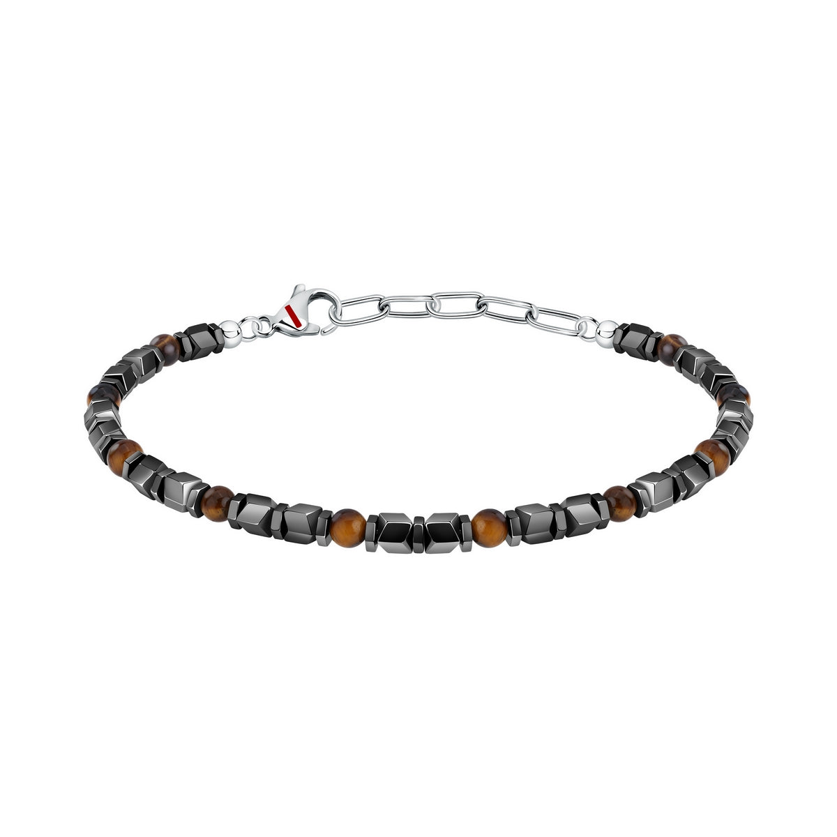 SECTOR BASIC BRACELET STAINLESS STEEL GREY HEMATITE & TIGER EYE STONES 21CM