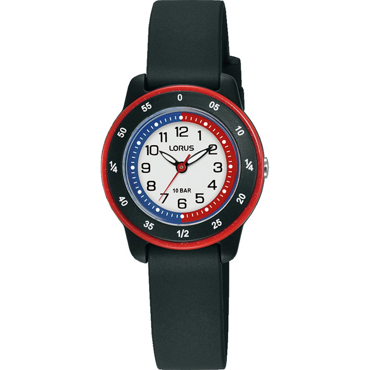 LORUS QUARTZ TIME TEACHER KIDS WHITE DIAL BLACK SILICONE STRAP WATCH