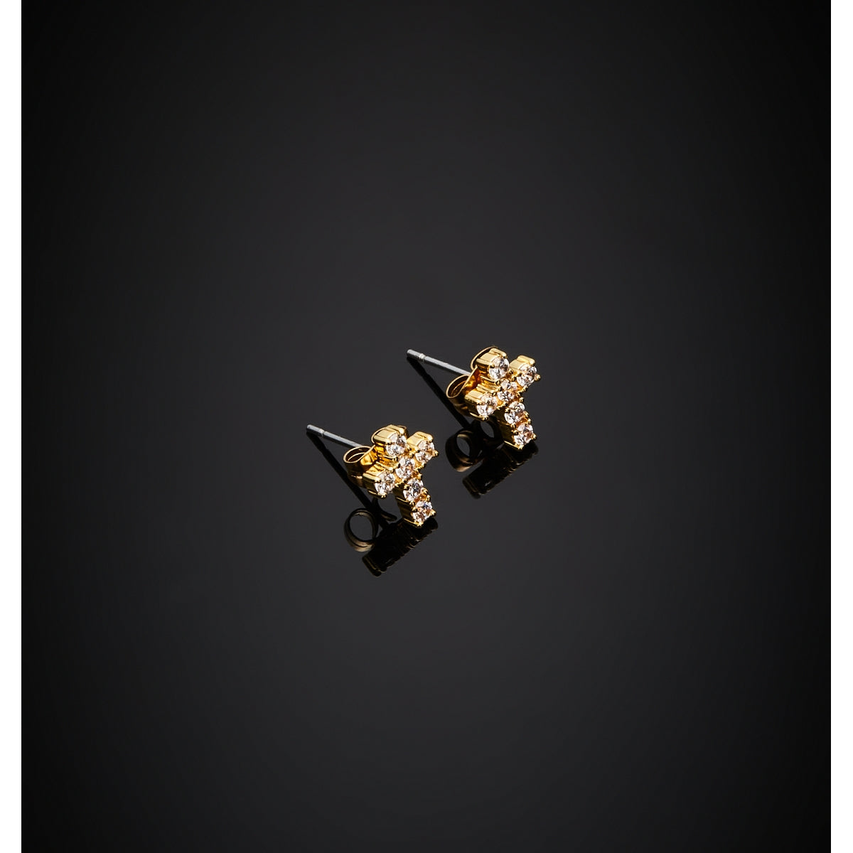 chiara ferragni croci earring cross with wh cz+yg plated 9mm