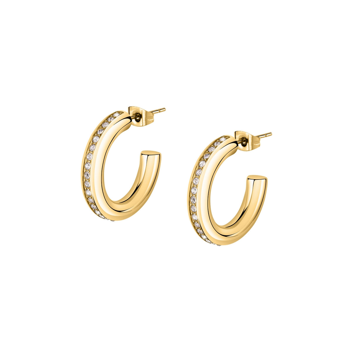 MORELLATO 18k GOLD PLATED CREOLE EARRINGS WHITE CRYSTALS 25MM