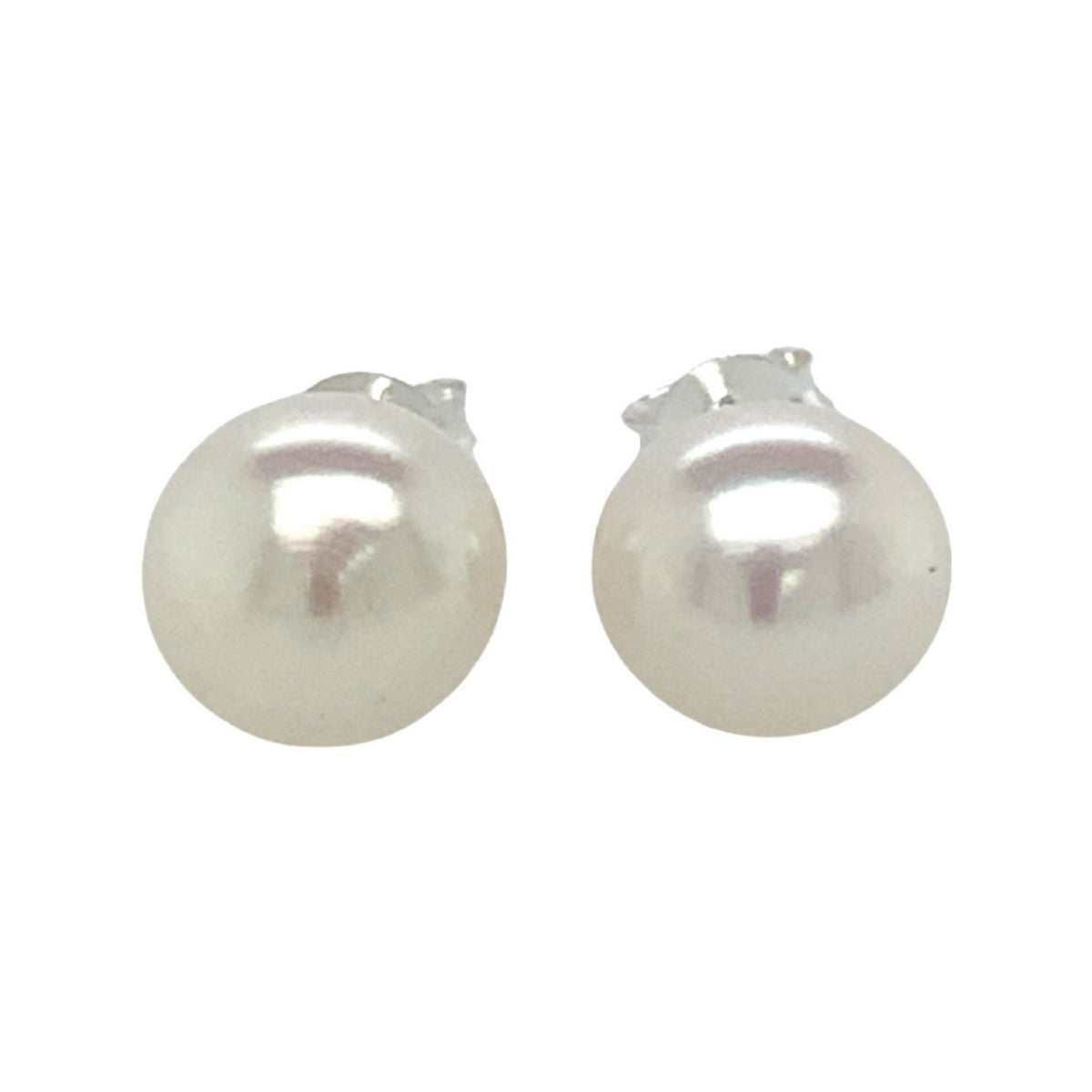 Silver Freshwater Pearl Stud Earrings 9-9.5mm