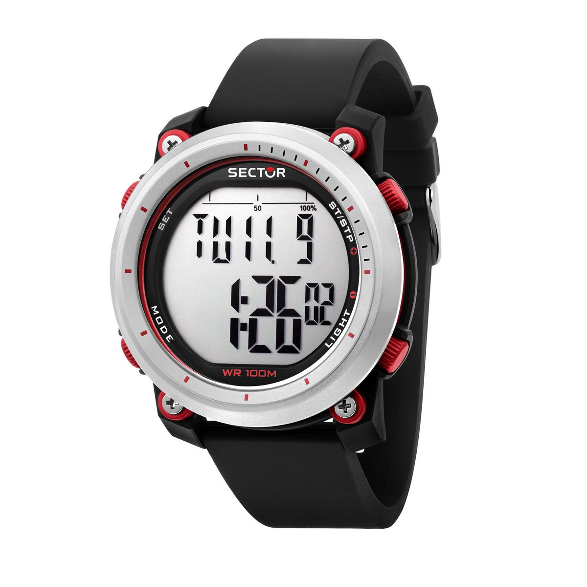 SECTOR EXPANDER EX-38 45MM DIGITAL BLACK SILICONE STRAP WATCH