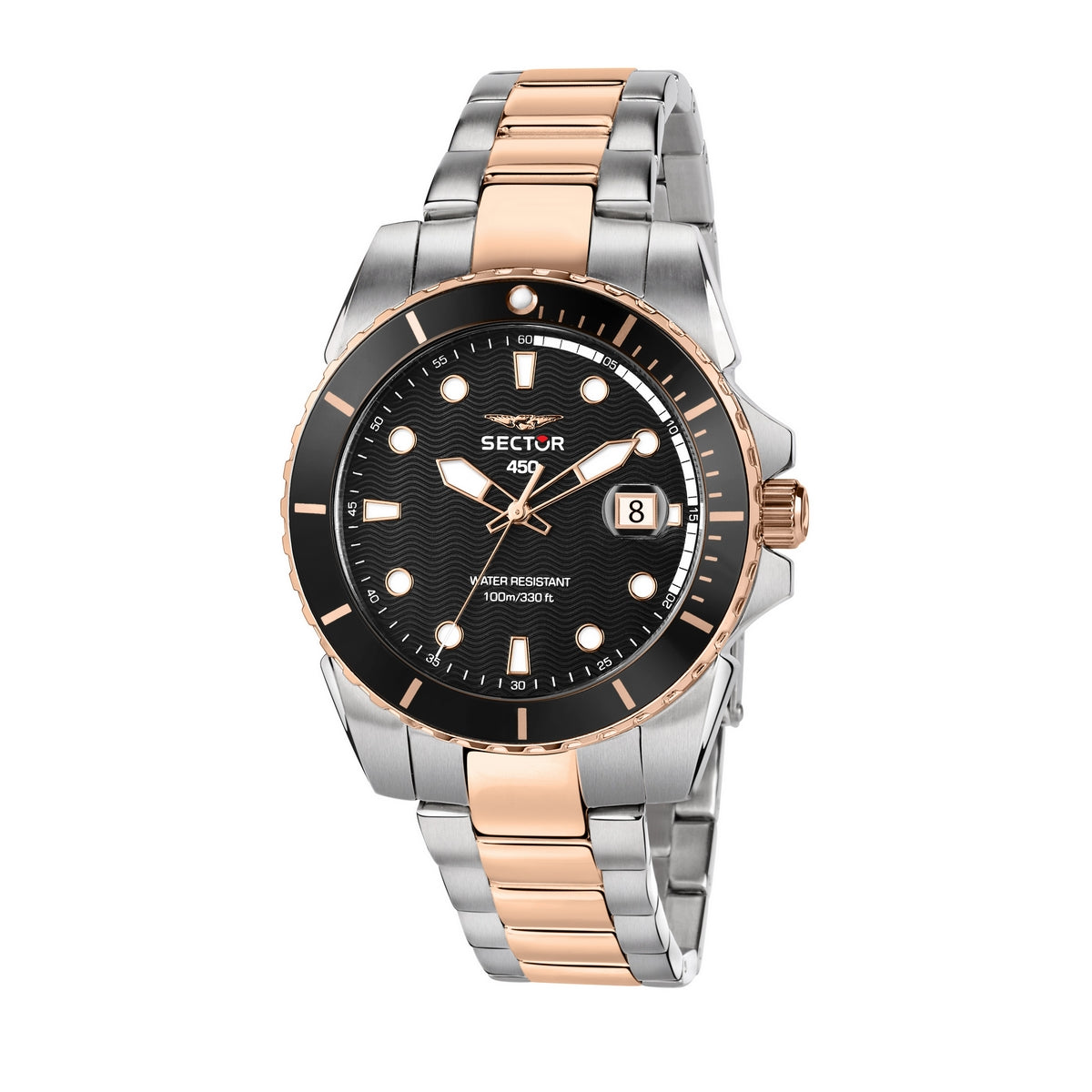 sector 450 41mm 3 hand black dial bracelet +rg watch