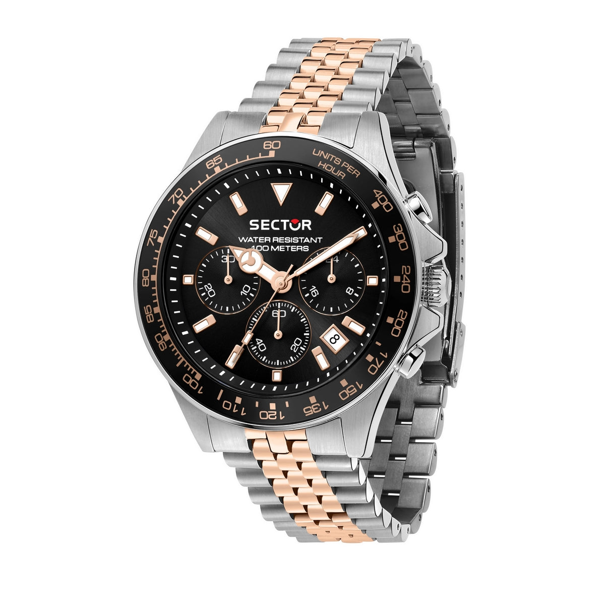 sector 230 43mm chronograph black dial bracelet +rg watch