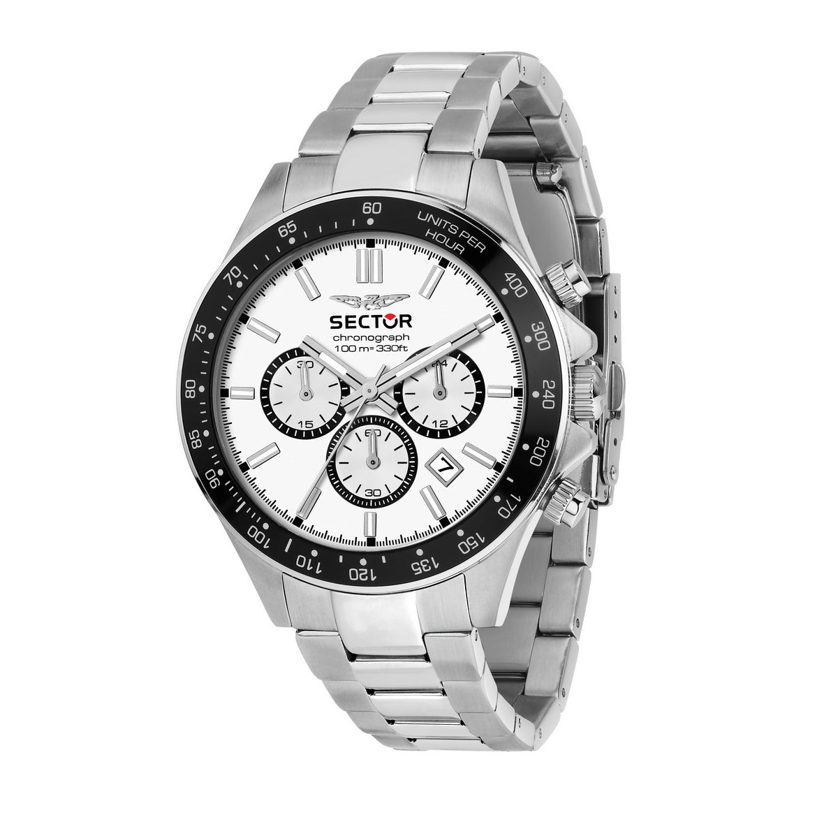 SECTOR CHRONOGRAPH QUARTZ GENTS STAINLESS STEEL WHITE DIAL BRACELET WATCH