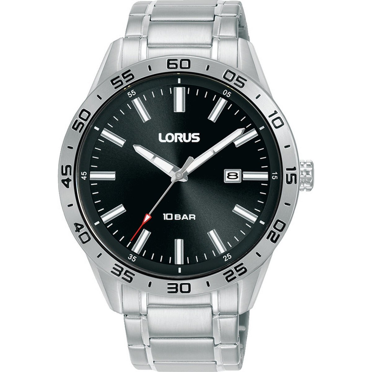 lorus quartz gents stainless steel black dial bracelet watch