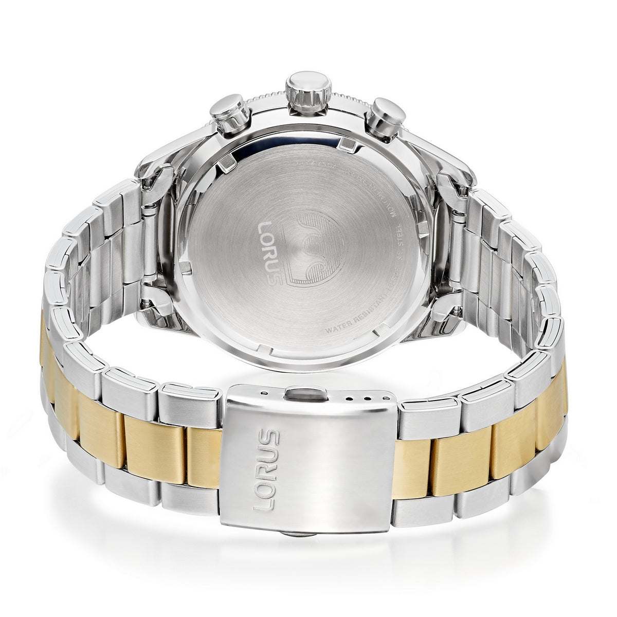 lorus chronograph gents two tone stainless steel green dial brcelet watch