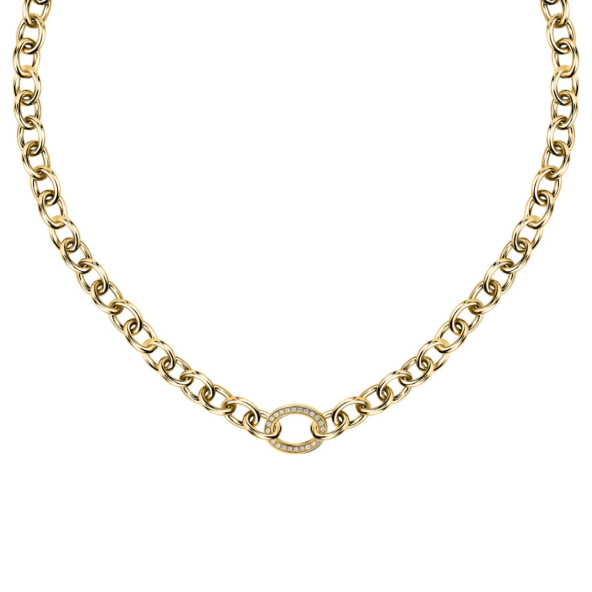 MORELLATO 18k GOLD PLATED INTRECCI NECKLACE STAINLESS STEEL YG CRYSTAL 40+5CM