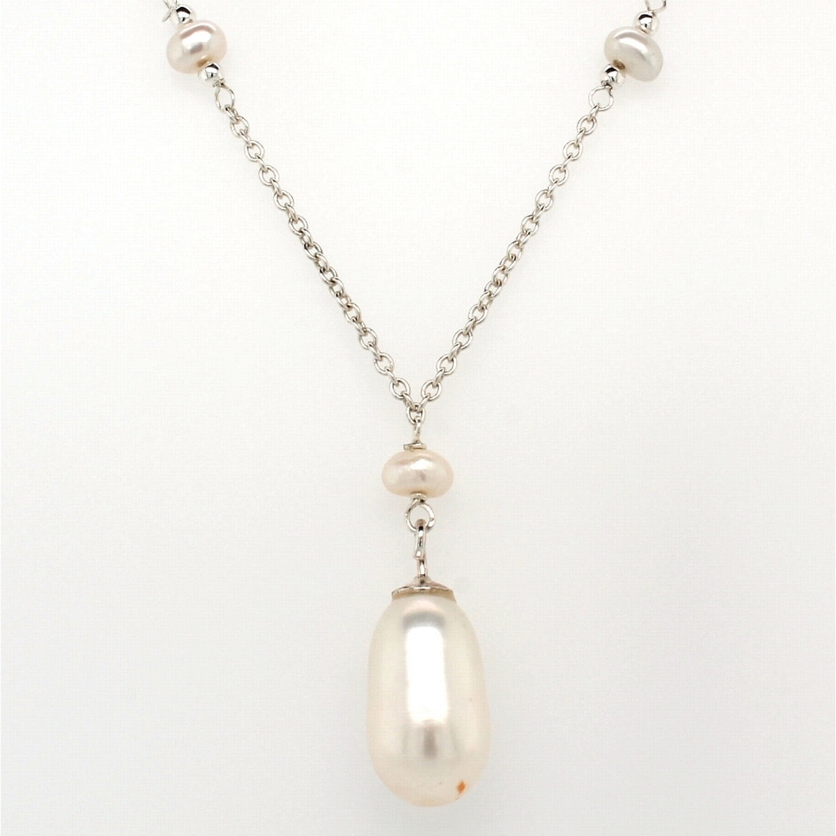 Silver Multi Pearl Inlay Drop Necklace 44 cm