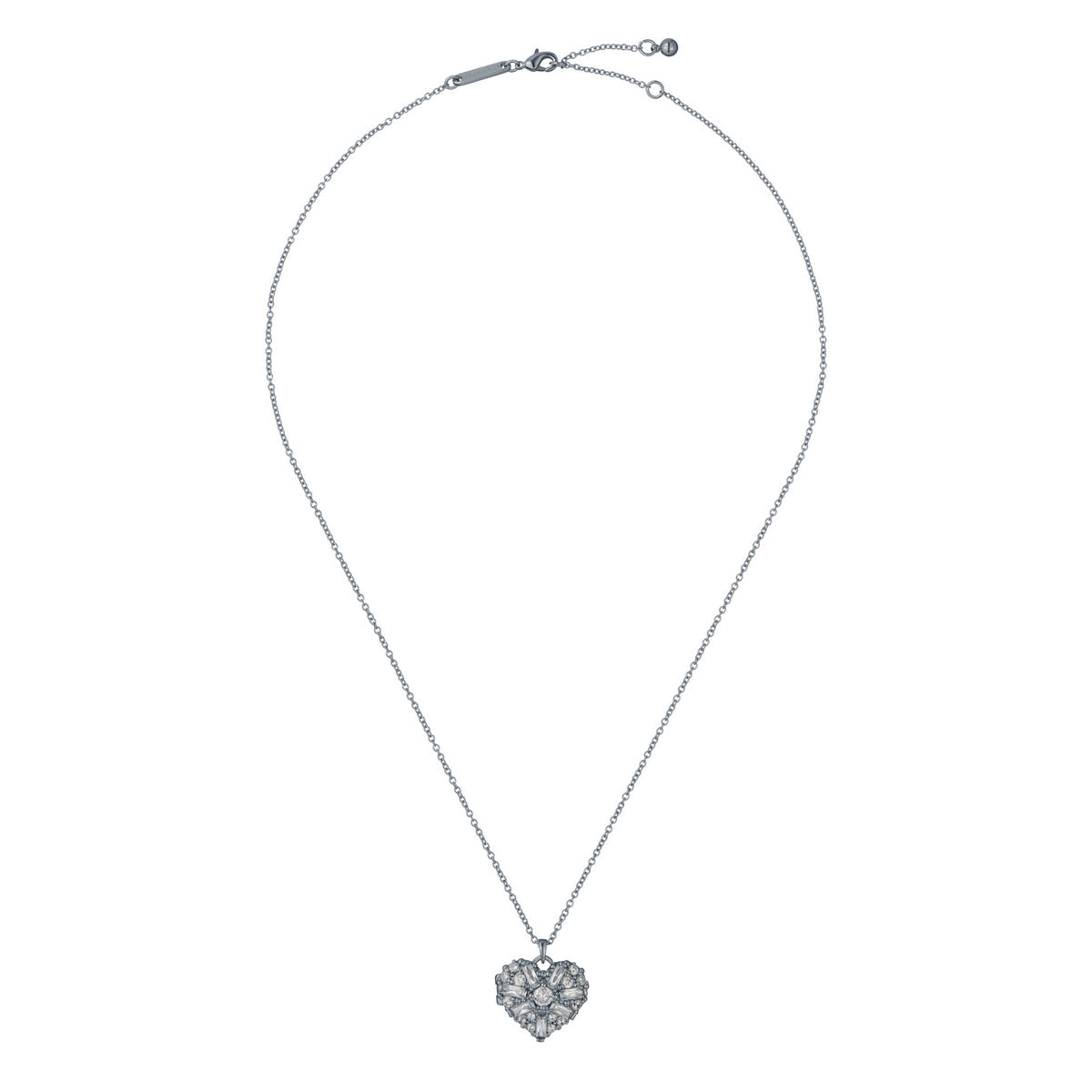ted baker cherish: crystal cluster heart locket pendant necklace silver tone