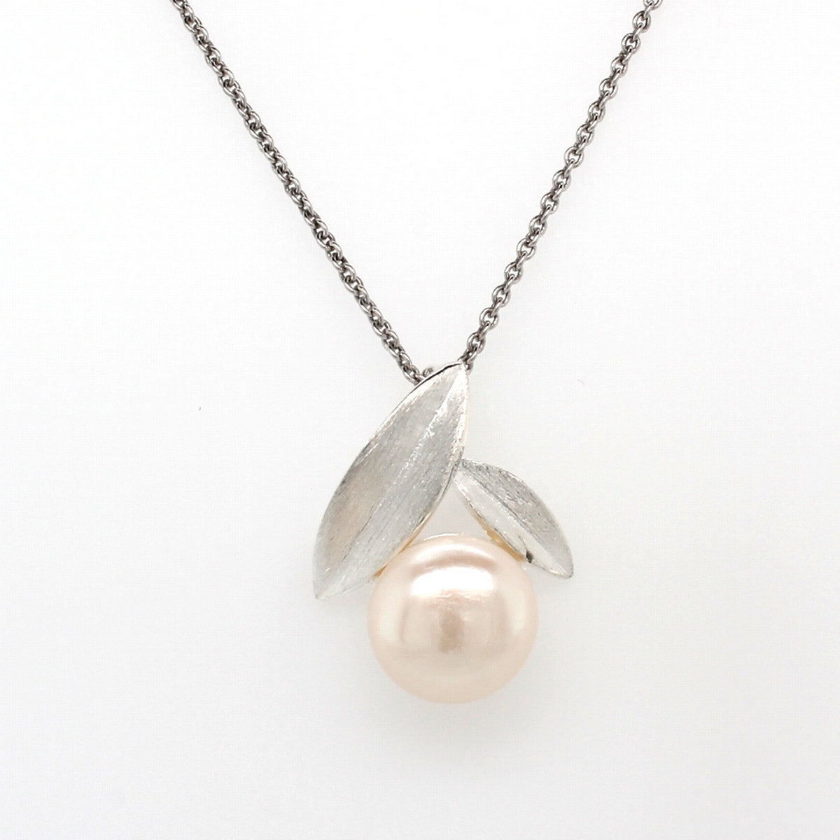 Silver Pearl Frosted Leaf Pendant on a 45cm Chain