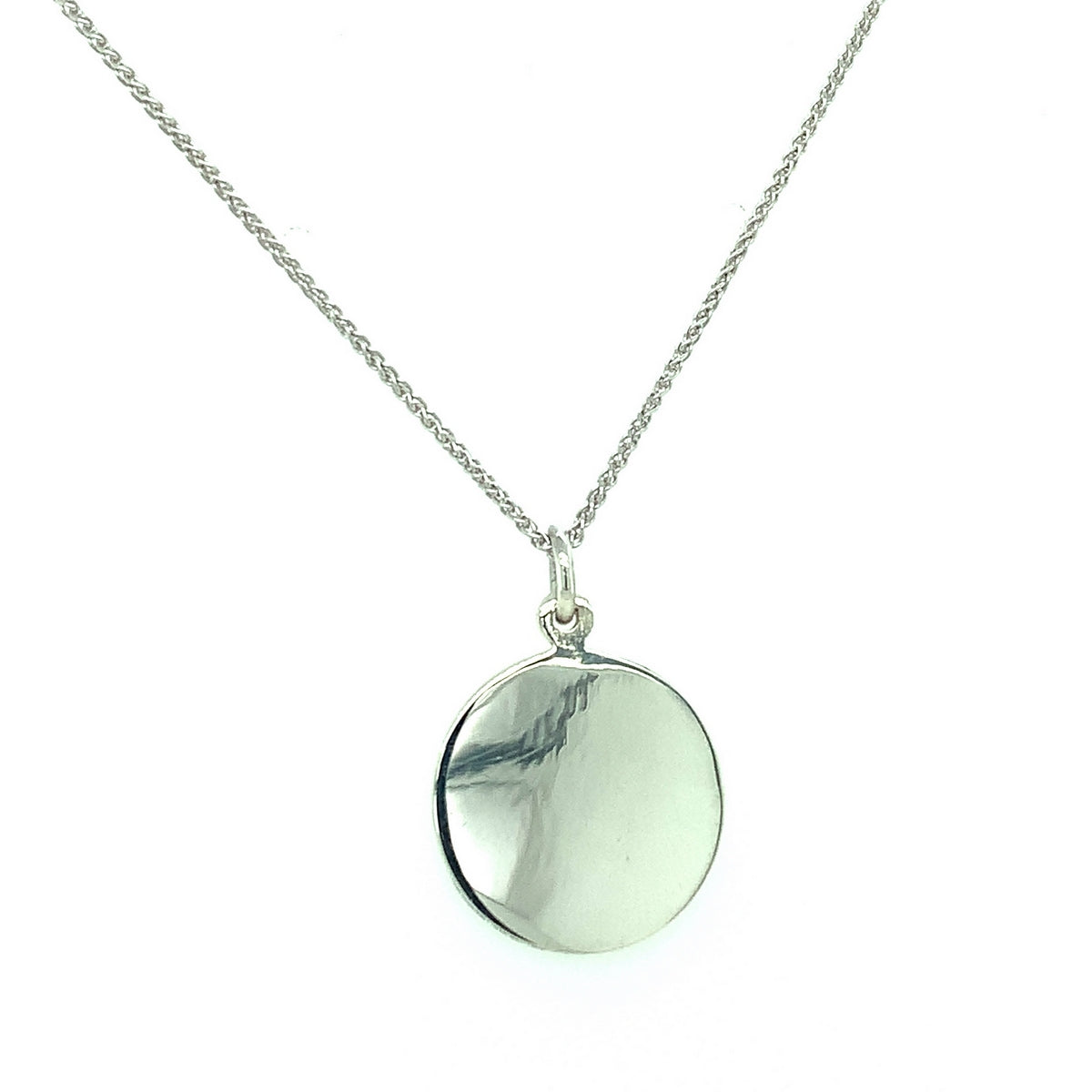 silver disc pendant 15.5mm diameter on 40cm chain a