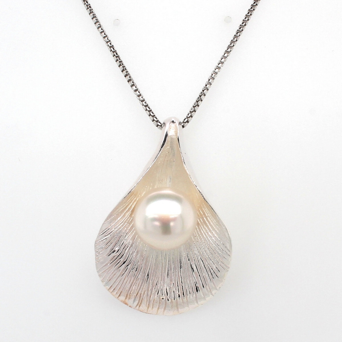 Silver large Shell and Pearl Pendant 12mm on 45cm Chain A