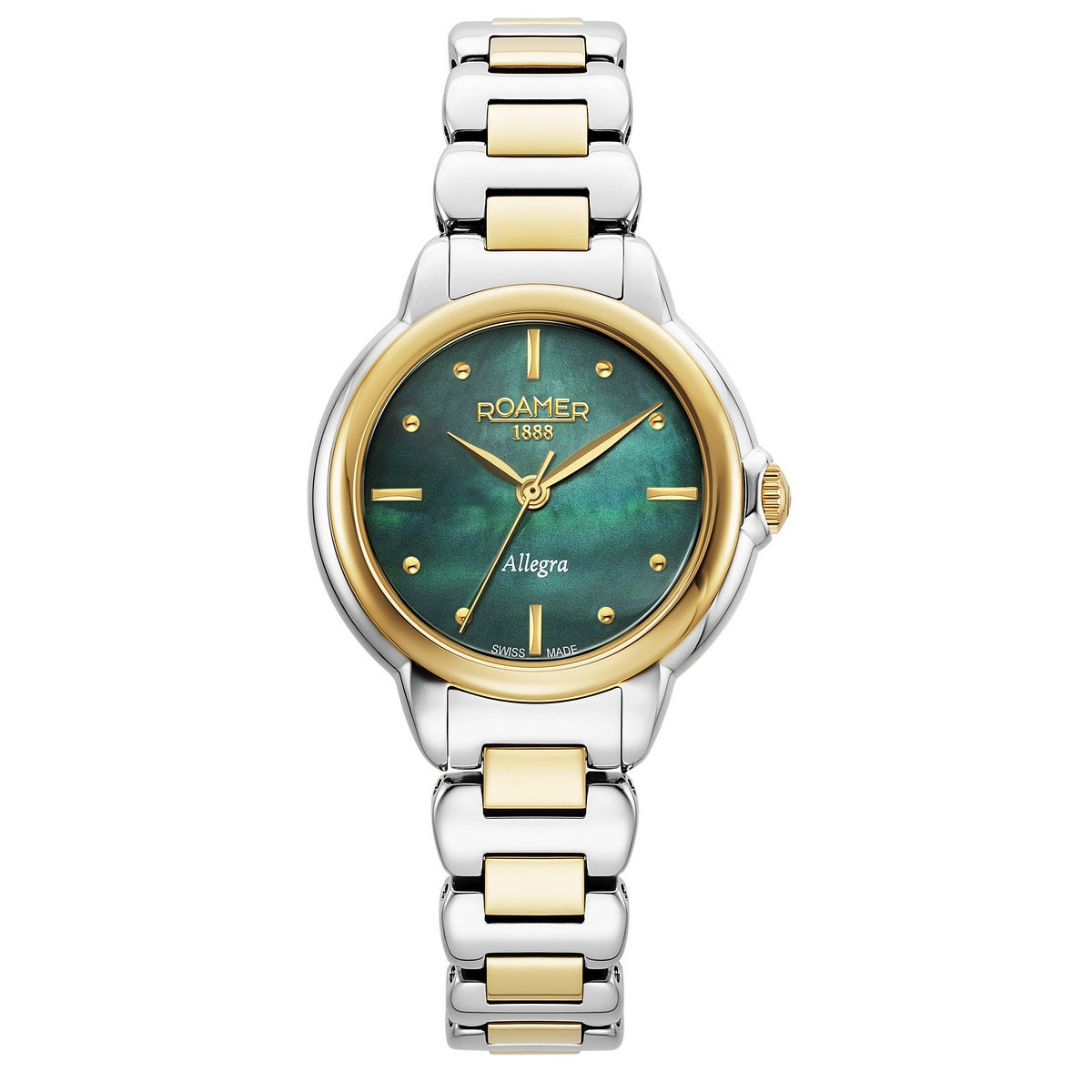 ROAMER ALLEGRA LADIES TWO TONE GREEN DIAL MOP BRACELET WATCH