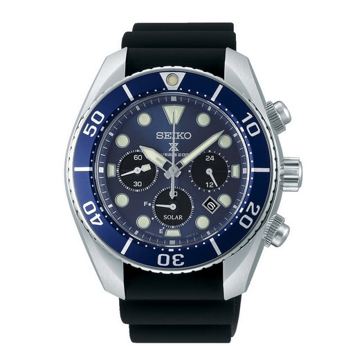 seiko prospex solar sumo chronograph blue dial stainless strap watch