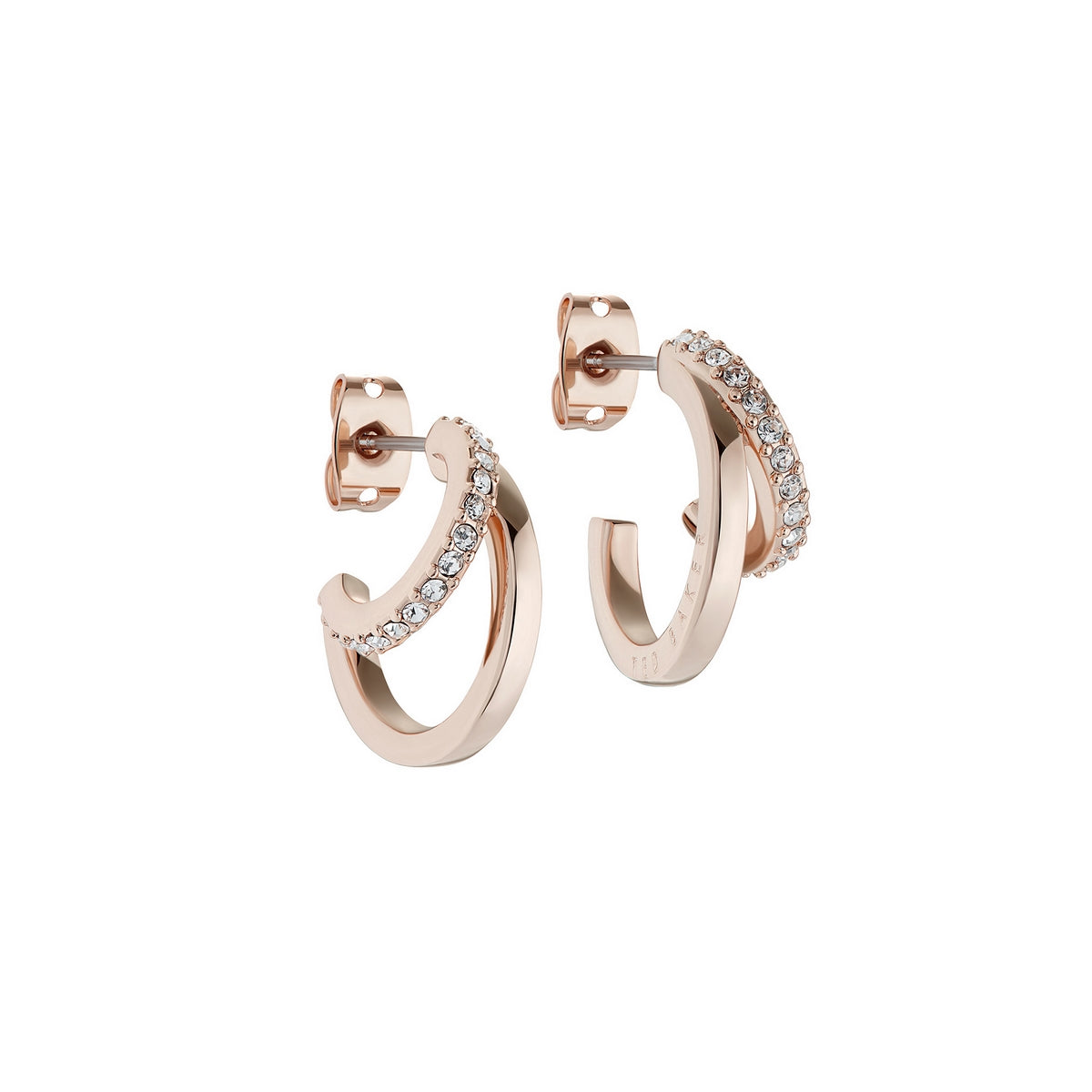 helias: crystal double hoop crystal earring rose gold tone, clear crystal