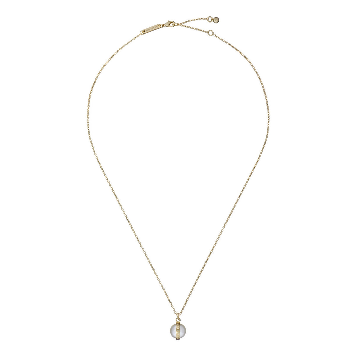 TED BAKER PERRETI: Logo Pearl Gold Tone Pendant Necklace