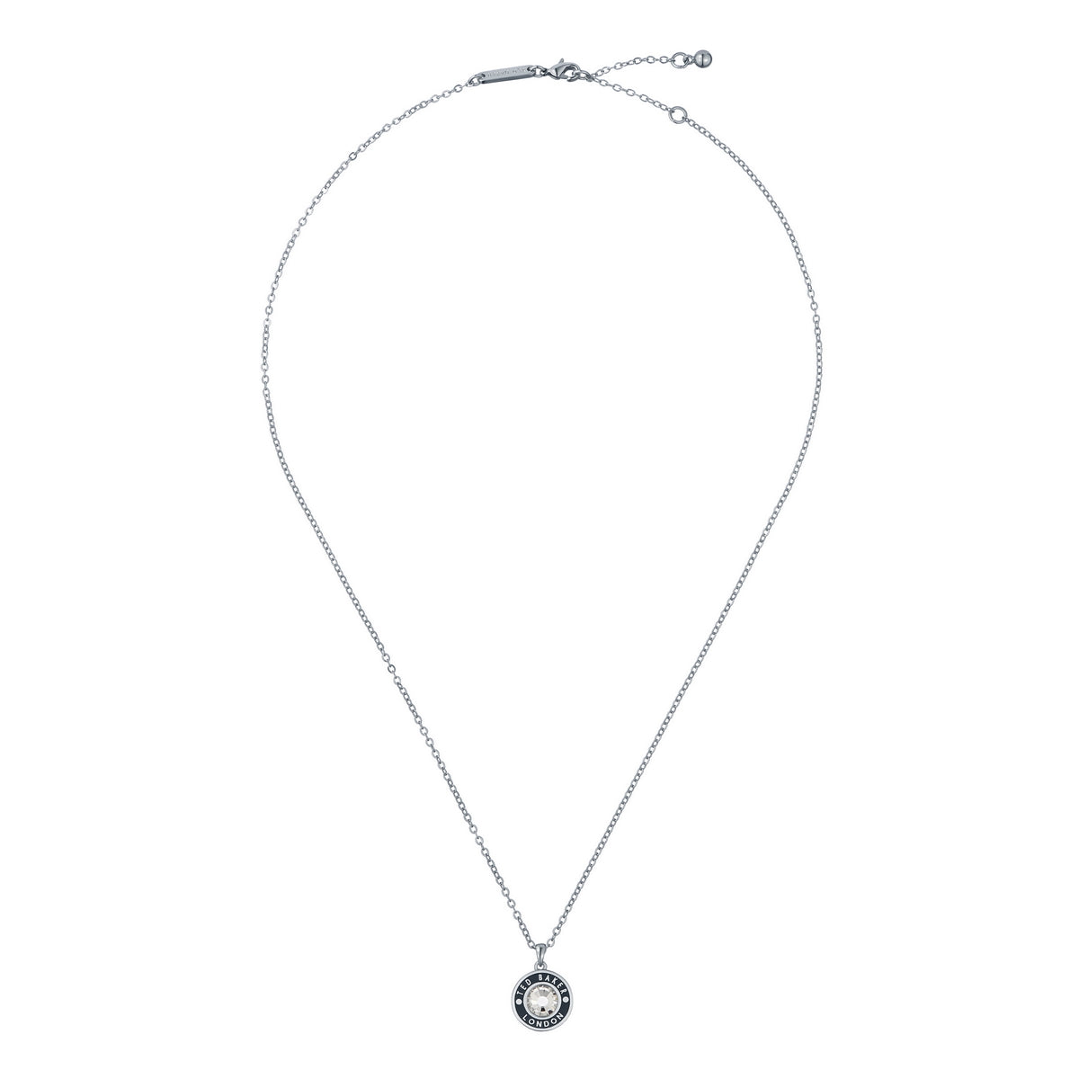 ted baker cherlie: crystal button pendant necklace silver tone, black, clear crystal
