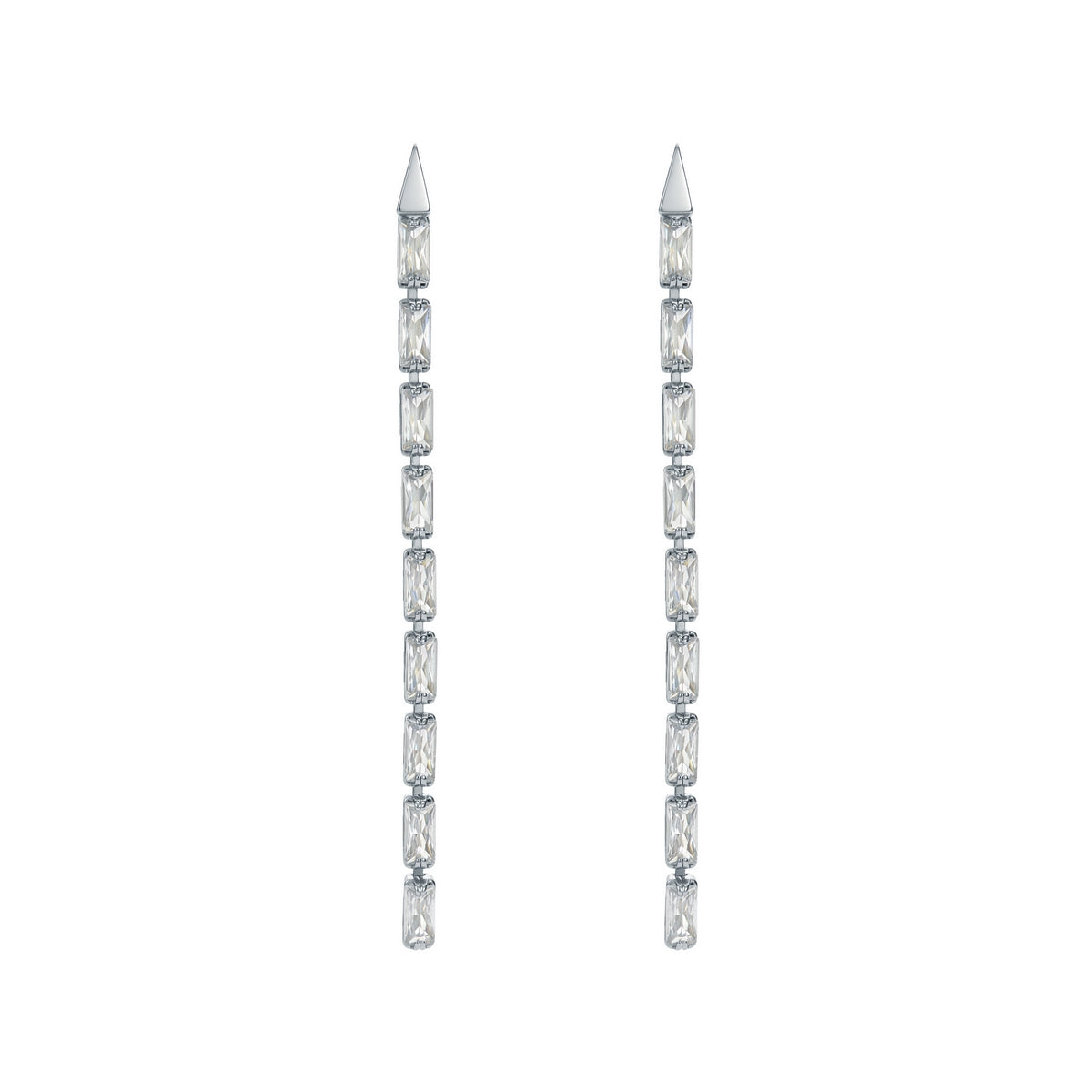 ted baker isalie: crystal baguette slinky drop earrings silver tone, clear crystal