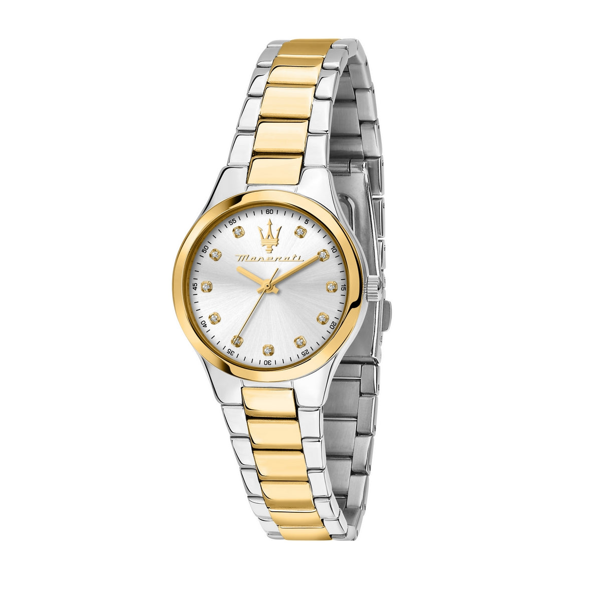 MASERATI ATTRAZIONE 30MM 3H SILVER DIAL STAINLESS STEEL & YELLOW GOLD BRACELET