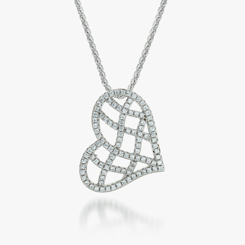 stoneset heart outline pendant with stoneset lines crossing in the centre