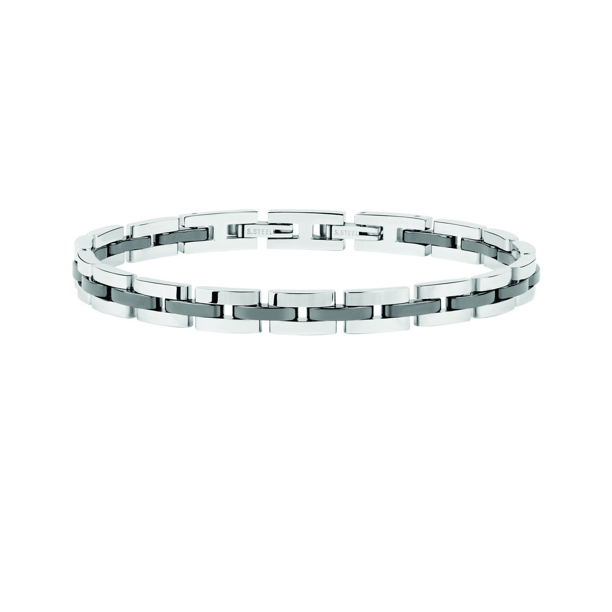 SECTOR CERAMIC BRACELET BLACK & SHINY STAINLESS STEEL 220mm