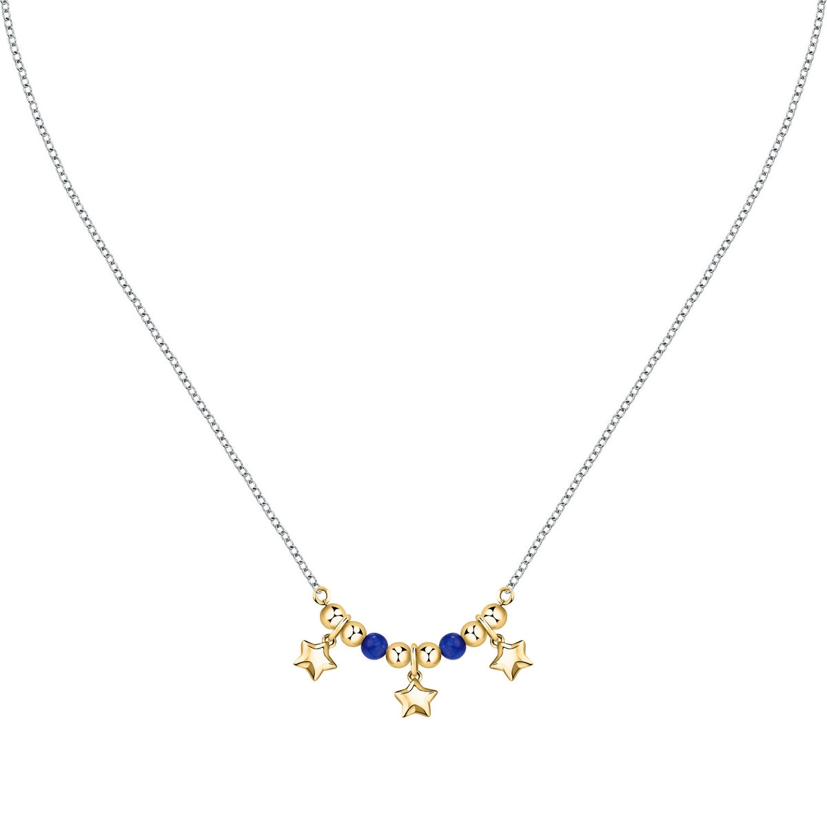 talismani necklace star steel&yellow gold plated agat blue 40+5cm
