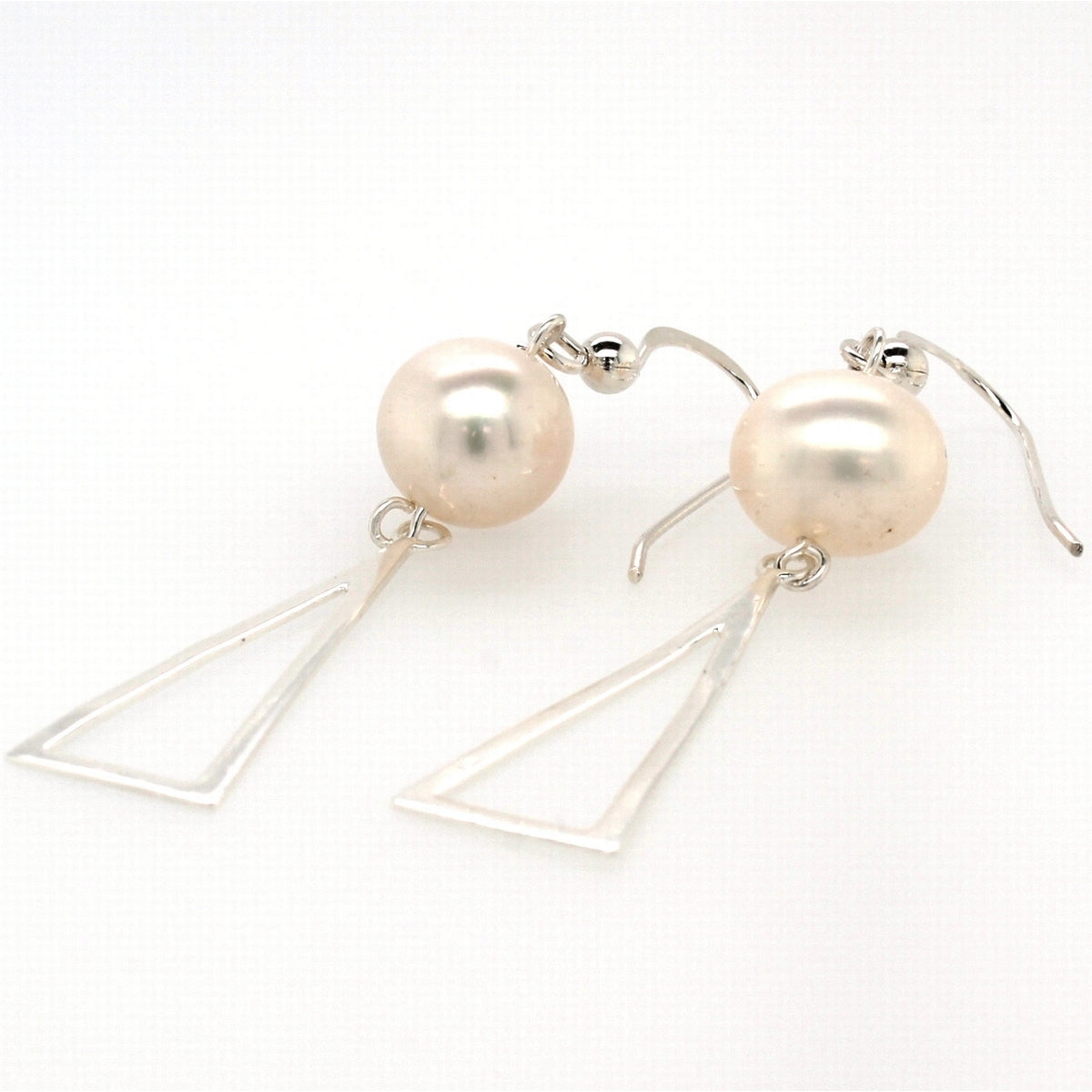 Silver Plain Triangle Pearl Drop Earwire Earring 9.5mm